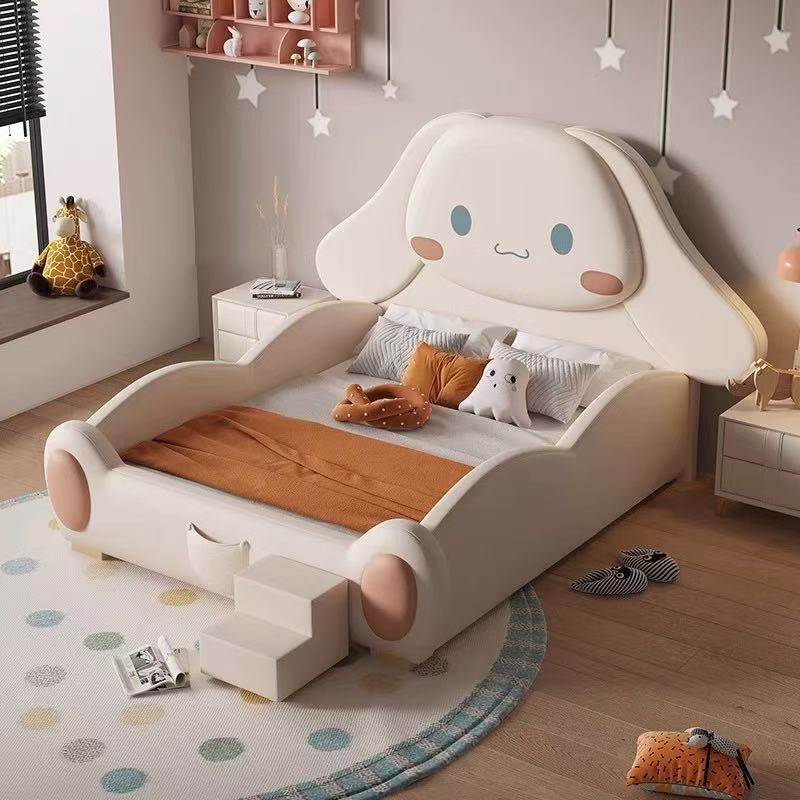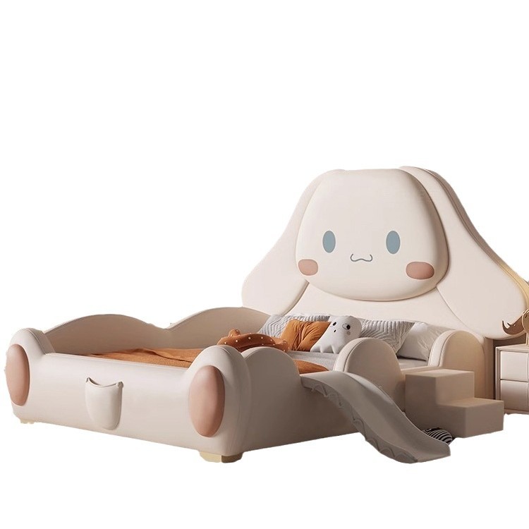 Cinnamoroll kids bed with slide, solid wood frame & soft upholstery, customizable size & color