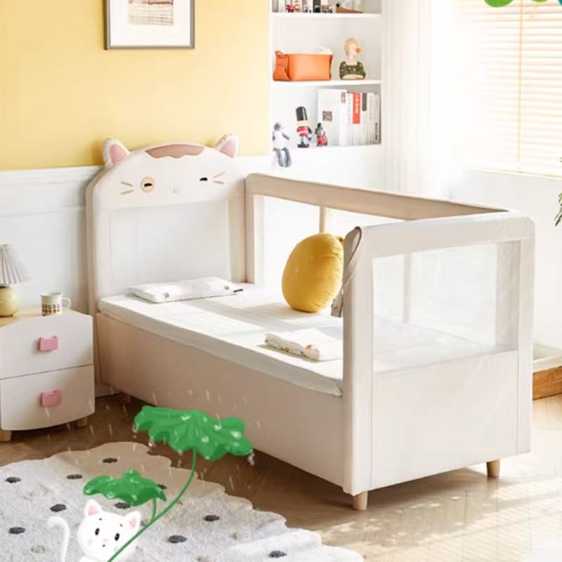 • Features a playful cat-shaped headboard with 3D ears and embroidered facial details