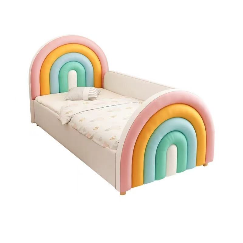 • Features vibrant double rainbow-shaped headboard and footboard for a playful, cheerful look