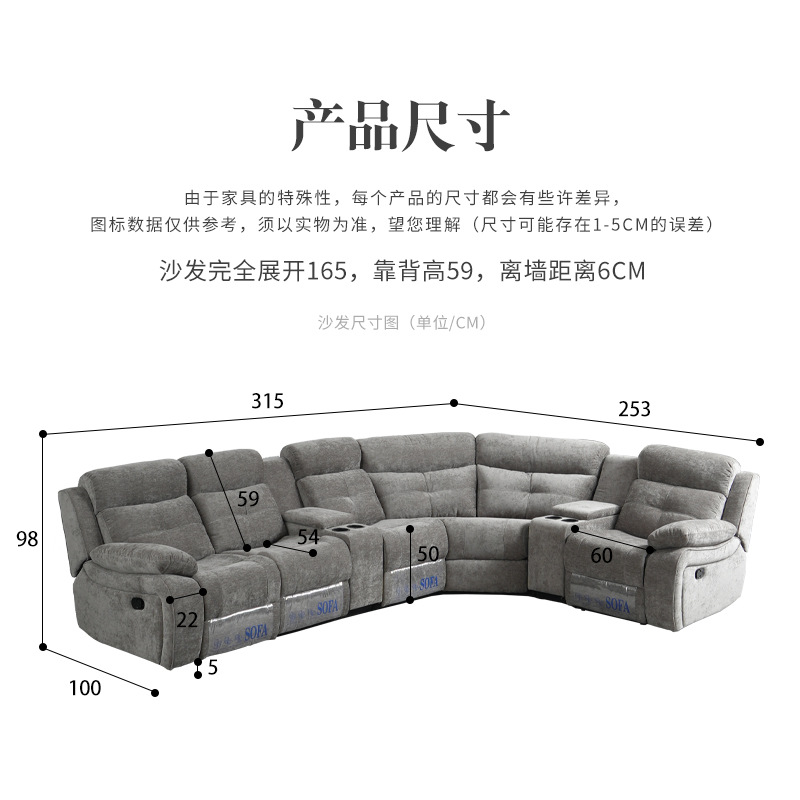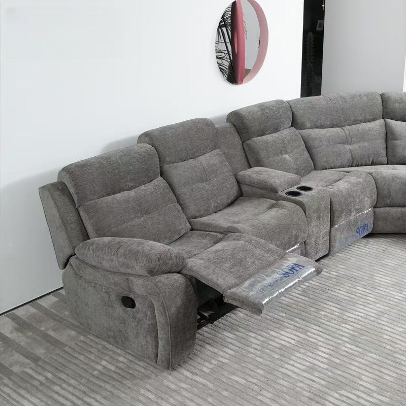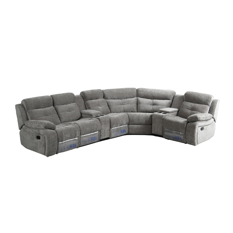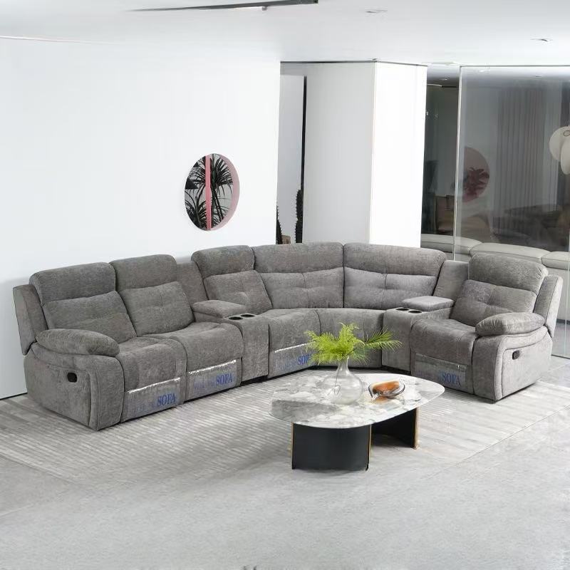 Multiple seats are equipped with manual recline levers, letting you smoothly adjust from upright seating to full relaxation. Integrated cup holders between seats provide convenient space for drinks, and the modular L-shape design maximizes seating capacity, making it perfect for large families or entertaining guests.
