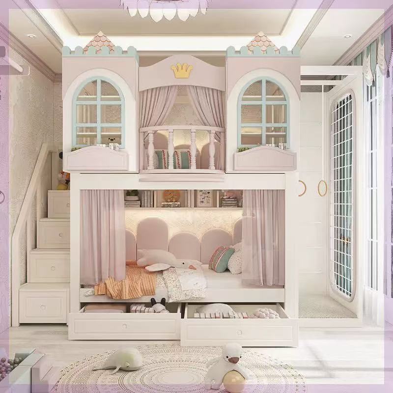 🔒 Comprehensive Safety Design:Rounded edges, anti-slip stair treads and stable guardrails eliminate potential hazards, providing a secure environment for kids to play, study and sleep