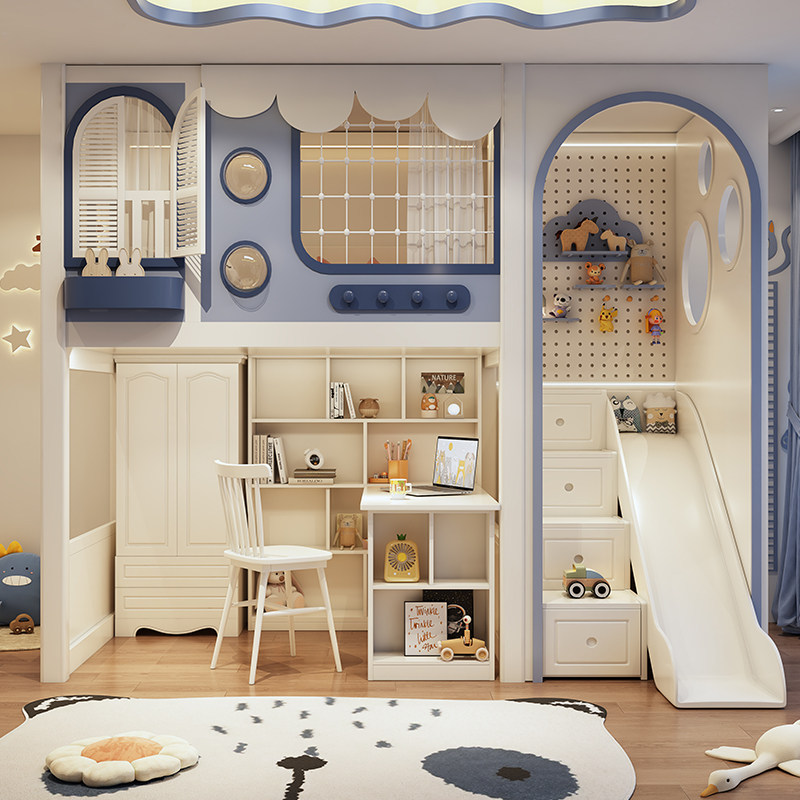 🛝 Sturdy Slide & Stair Cabinet:Smooth rounded-edge slide ensures safe and exciting playtime, while the stair cabinet with drawers offers easy loft access and hidden storage for ship models, ocean-themed toys and nautical storybooks