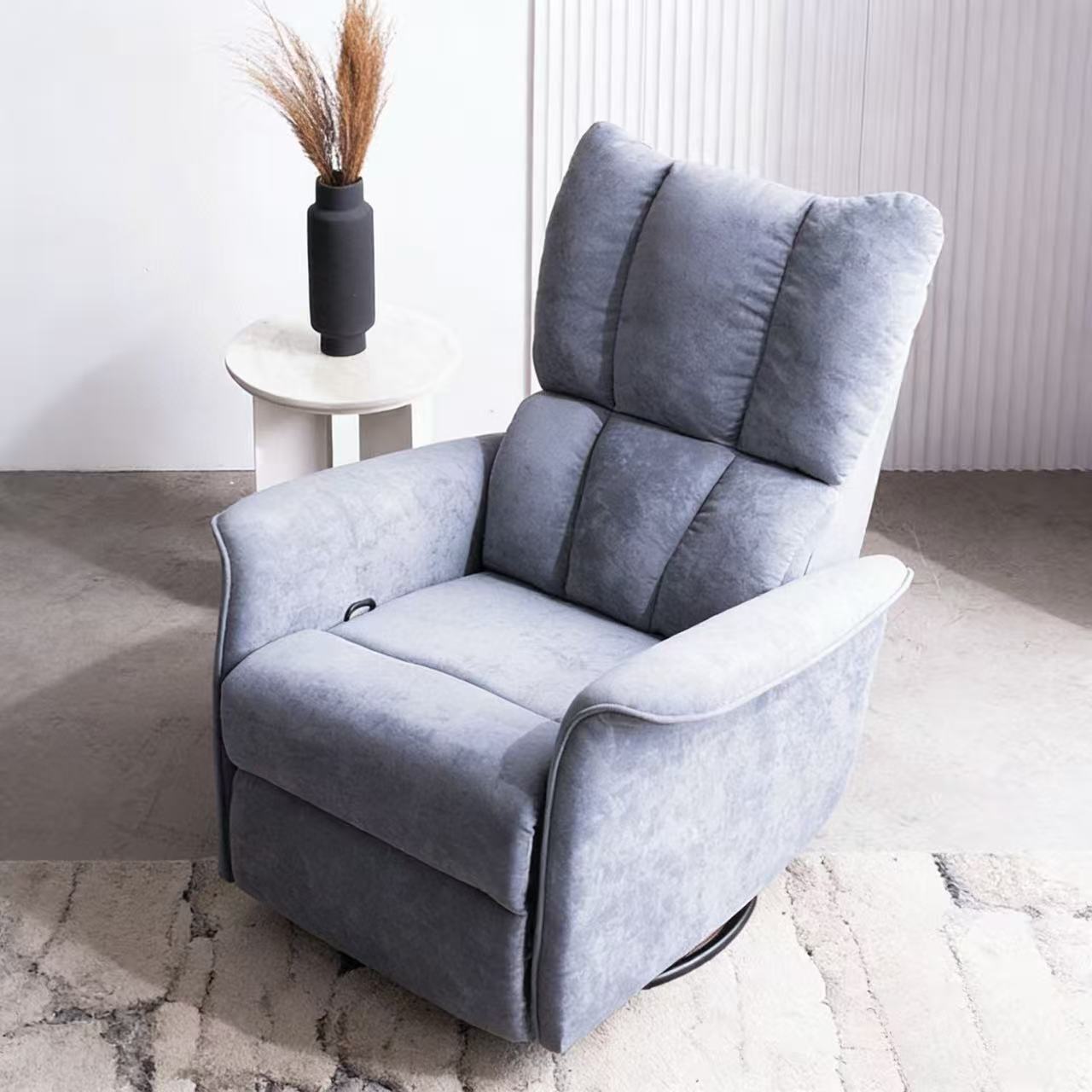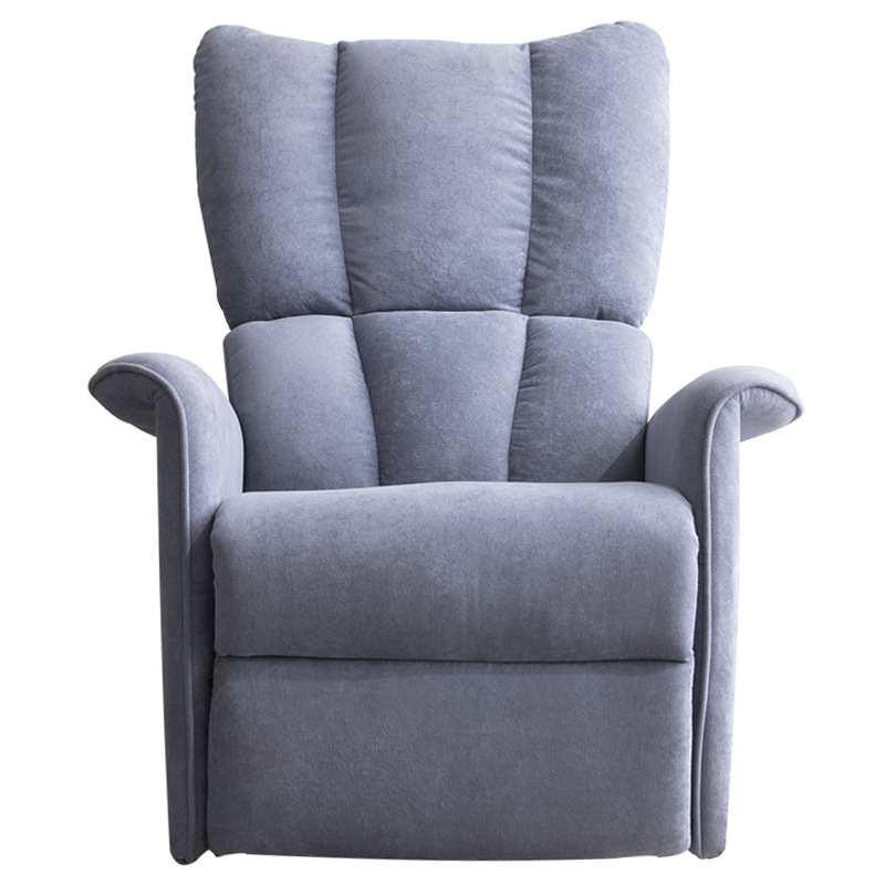 This single recliner chair features a soft slate blue fabric upholstery and a deeply padded, channel-tufted design that offers cloud-like support. The seat and backrest are filled with high-density sponge for long-lasting resilience, while the reinforced metal frame ensures stability and durability.