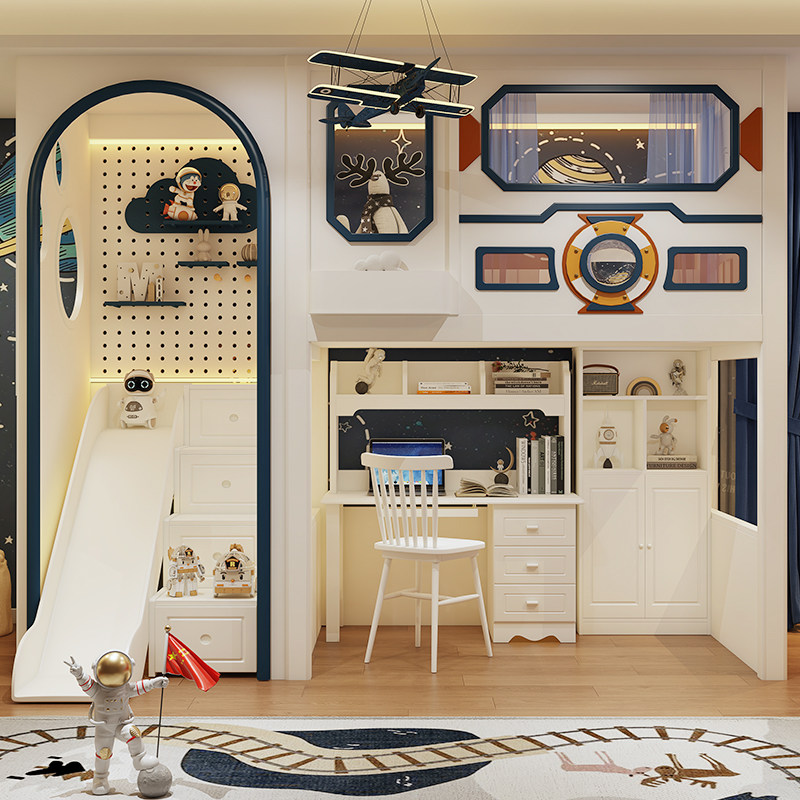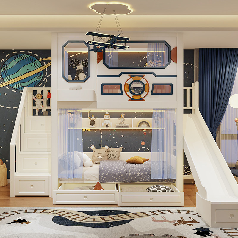 🛝 Sturdy Slide & Stair Cabinet:Smooth rounded-edge slide ensures safe and exciting playtime, while the stair cabinet with drawers offers easy loft access and hidden storage for rocket models, astronaut toys and space exploration books