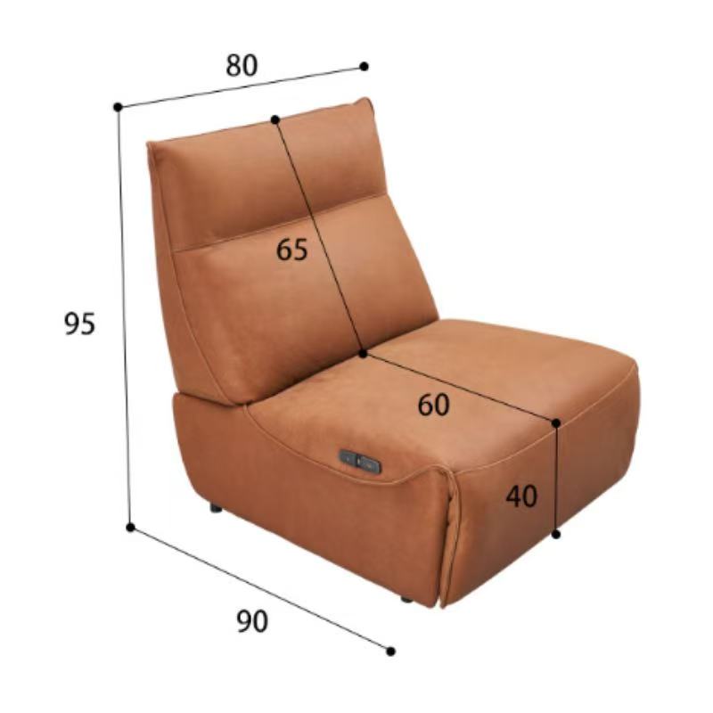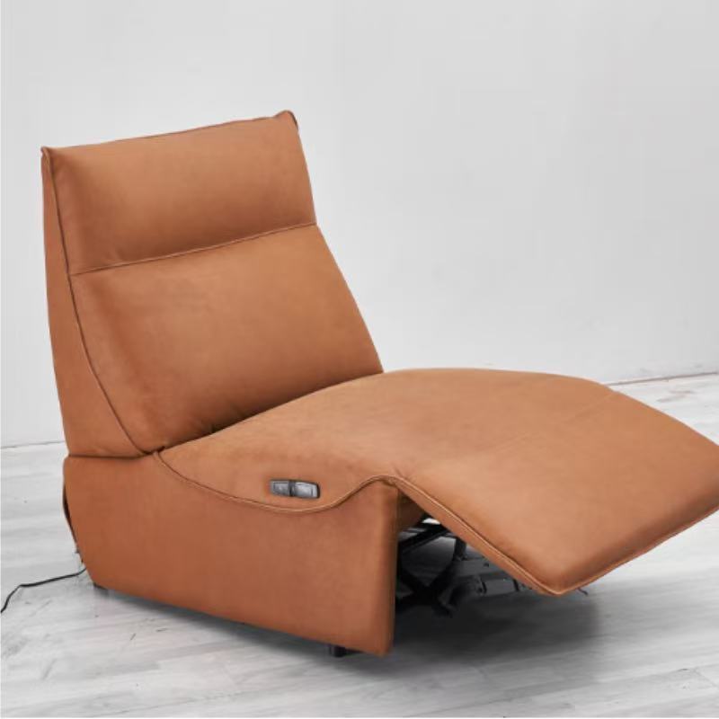 This single electric recliner chair features a warm terracotta leather upholstery, combining a modern low-profile aesthetic with effortless functionality. The seat and backrest are filled with high-density sponge for plush, resilient support, while the reinforced metal frame ensures stability and durability.