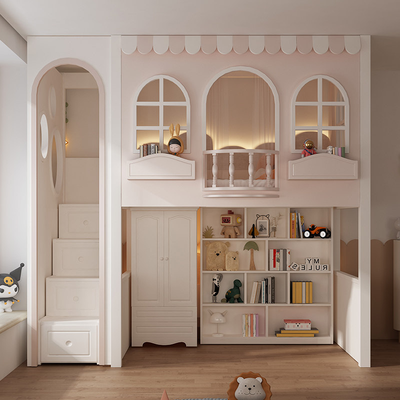 🔒 Comprehensive Safety Design:Rounded edges, anti-slip stair treads and stable guardrails eliminate potential hazards, providing a secure environment for kids to play, study and sleep